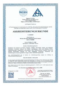 Naše laboratoř úspěšně získala Osvědčení o akreditaci nově i v německém jazyce. Díky tomu nyní můžeme zákazníkům nabídnout vydávání akreditovaných protokolů nejen v češtině a angličtině, ale i v němčině. Tato novinka nám umožní poskytovat služby ještě blíže potřebám našich klientů.